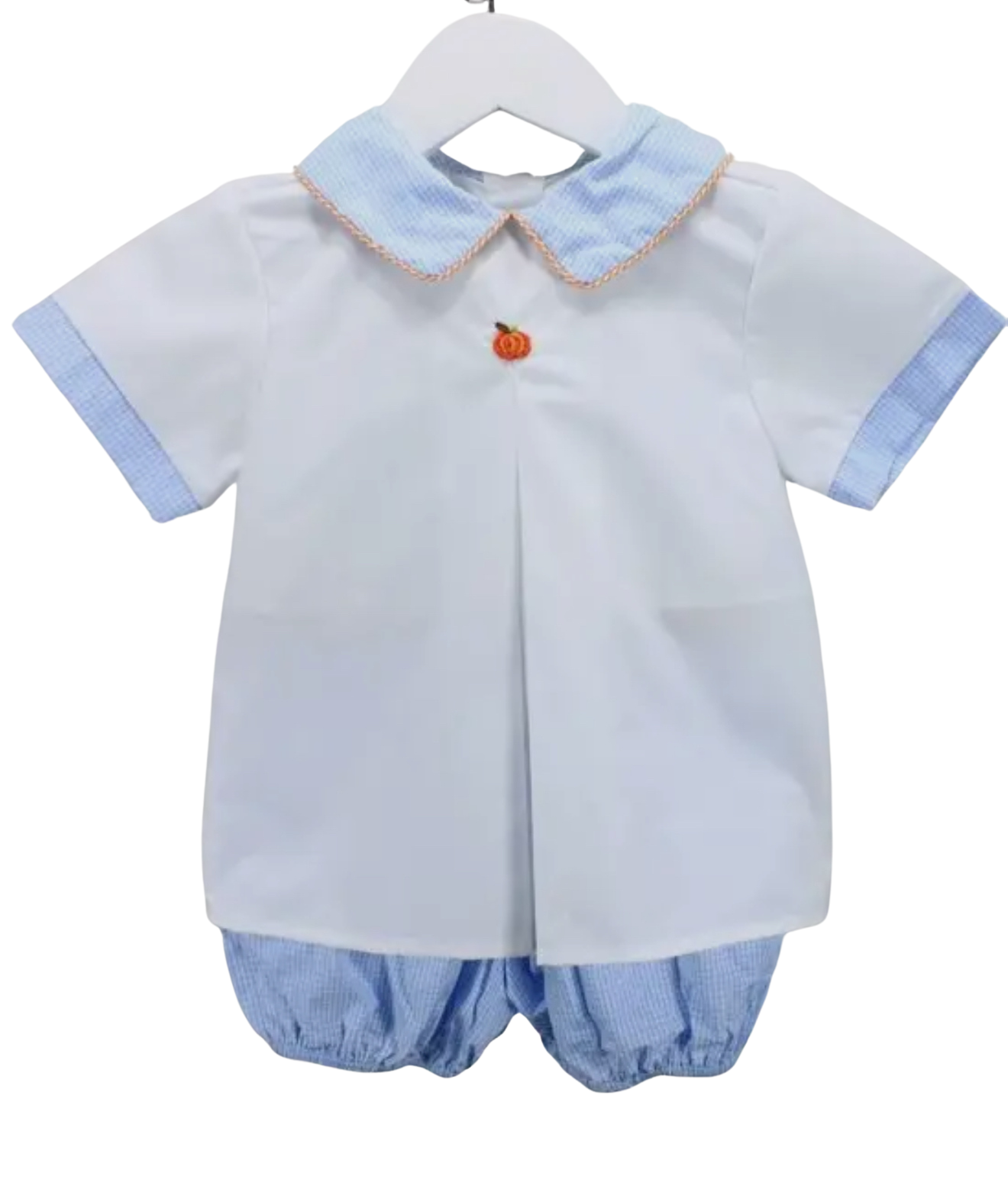 Our Cooper Pumpkin Set is an exceptional offering from Baby Blessings Clothing. Inspired by the charm of timeless classics, this clothing set is designed with the utmost attention to detail. Each stitch and color combination is carefully selected to create a garment that not only looks beautiful but also stands out with its unique embroidery. Dress your little ones in our Cooper Pumpkin Set and let their joy shine through.