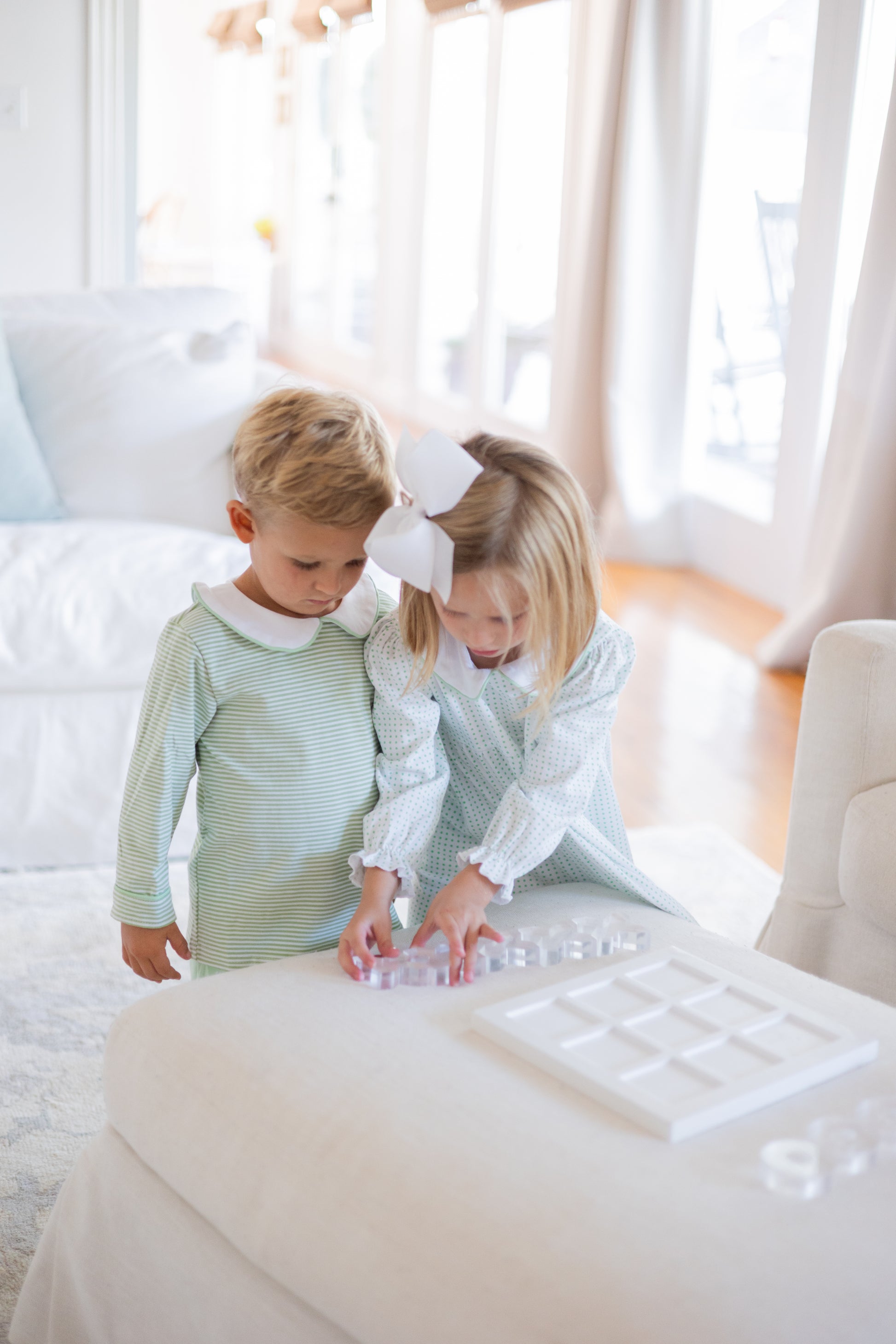 Such a sweet collection! Our green and white stripe long sleeve Peter Pan collar shirt and pant sets are to die for. These are made out of quality 95% cotton, 5% spandex and makes the perfect go-to outfit for play, school, or special occasions. We are all about versatility because these are perfect for Mardi Gras, St. Patrick's Day, Easter, and well into the spring! Runs TTS